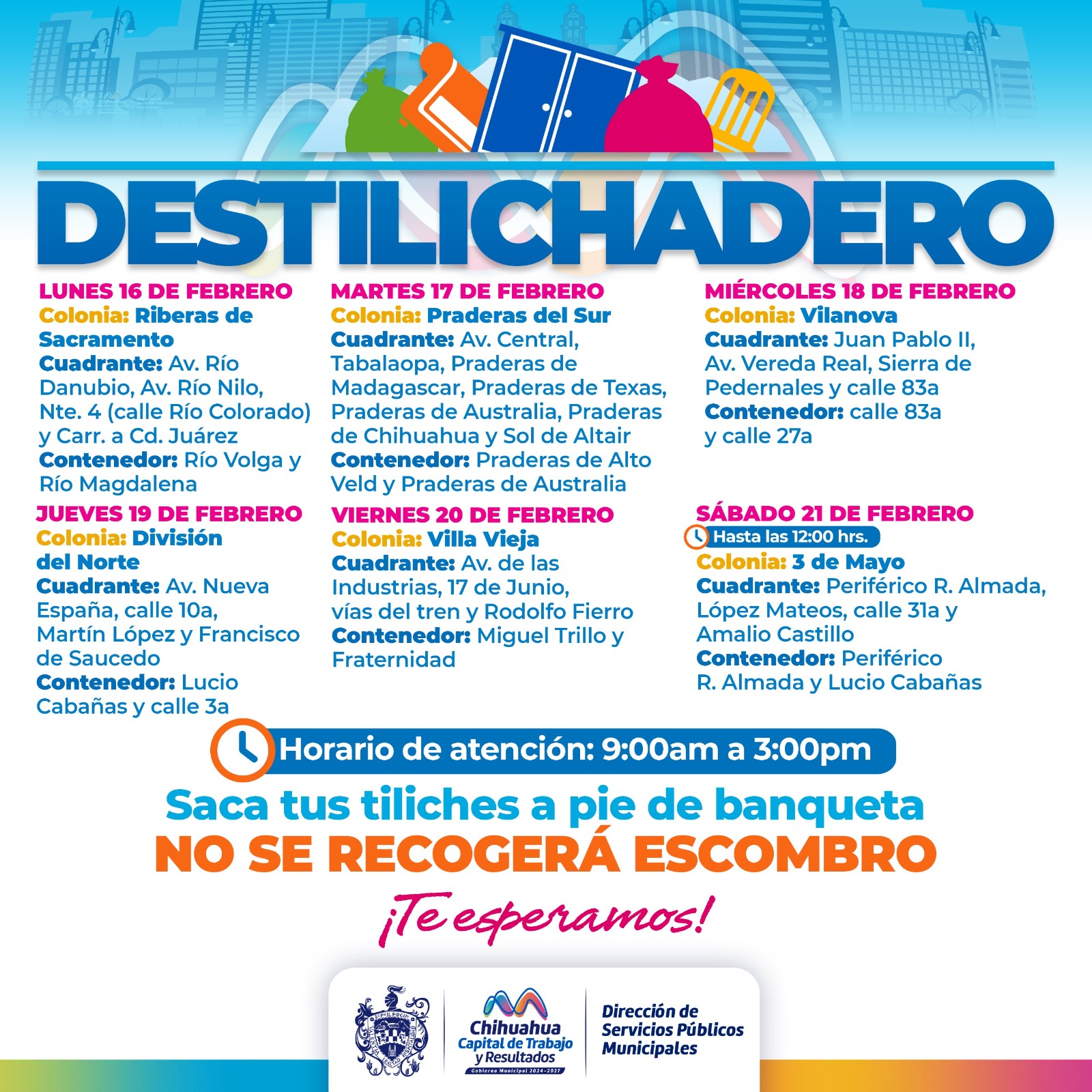 Local Aliste sus tiliches estará elprograma Destilichadero seis colonias del 16 al 21 de febrero Contexto Norte MX 14/02/2026