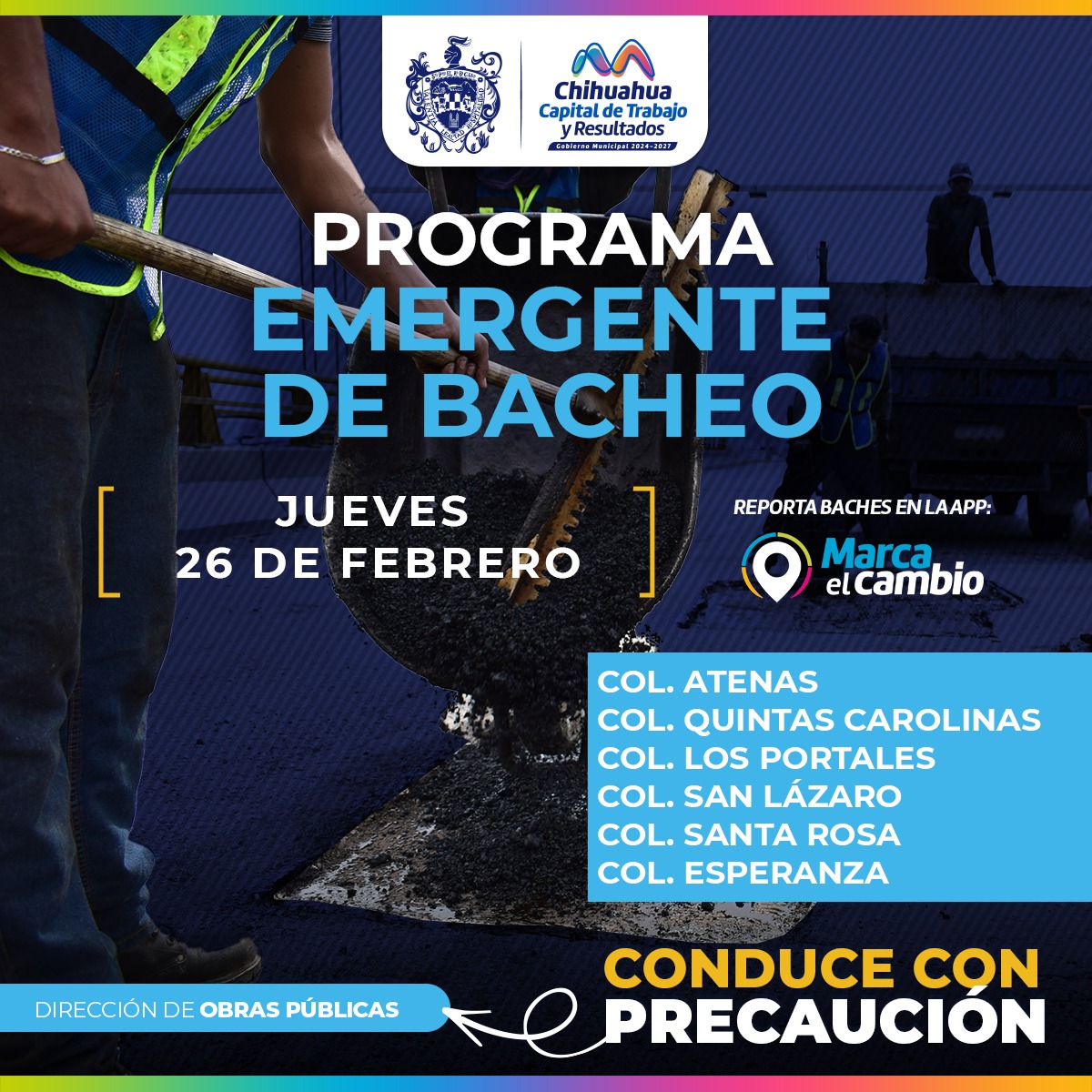 Local Los Pinos, El León, Margarita Maza, Centro y Juan Pablo Segundo en el bacheo de este 25 de febrero Contexto Norte MX 25/02/2026