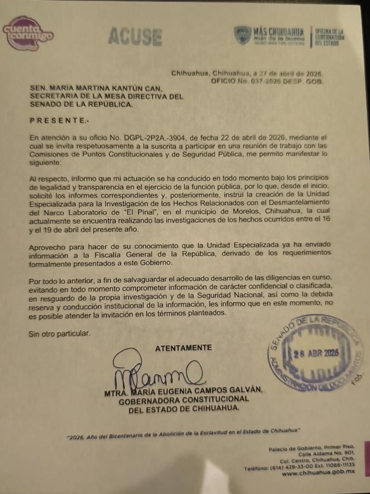 Nacional Exhibe Sheinbaum “clandestinidad” en Chihuahua: Acusa a Maru Campos de violar la Constitución por pactos con EE. UU. Contexto Norte MX 23/04/2026
