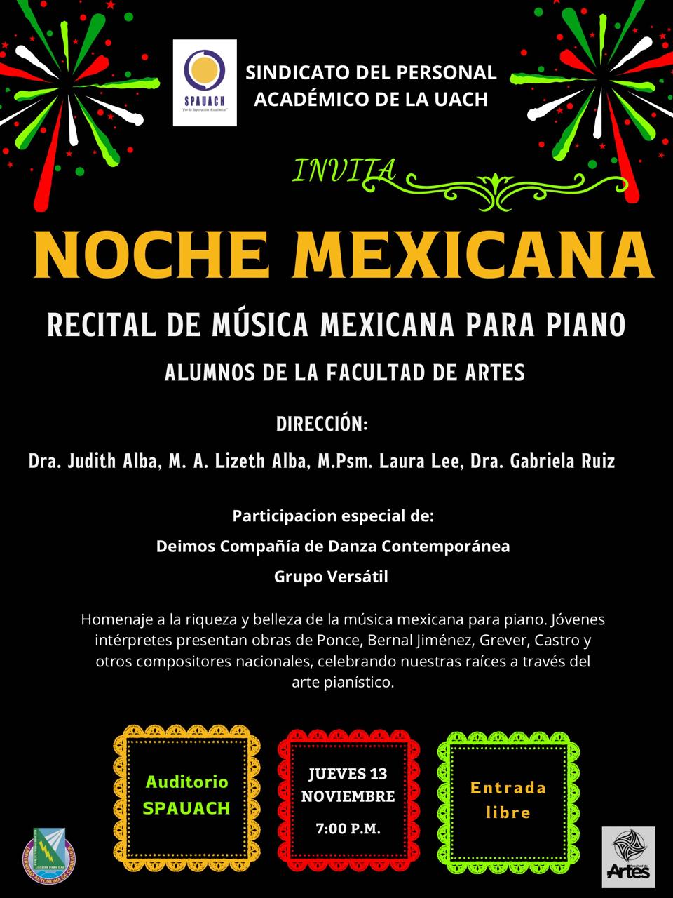 Noche Mexicana en el Spauach este 13 de noviembre