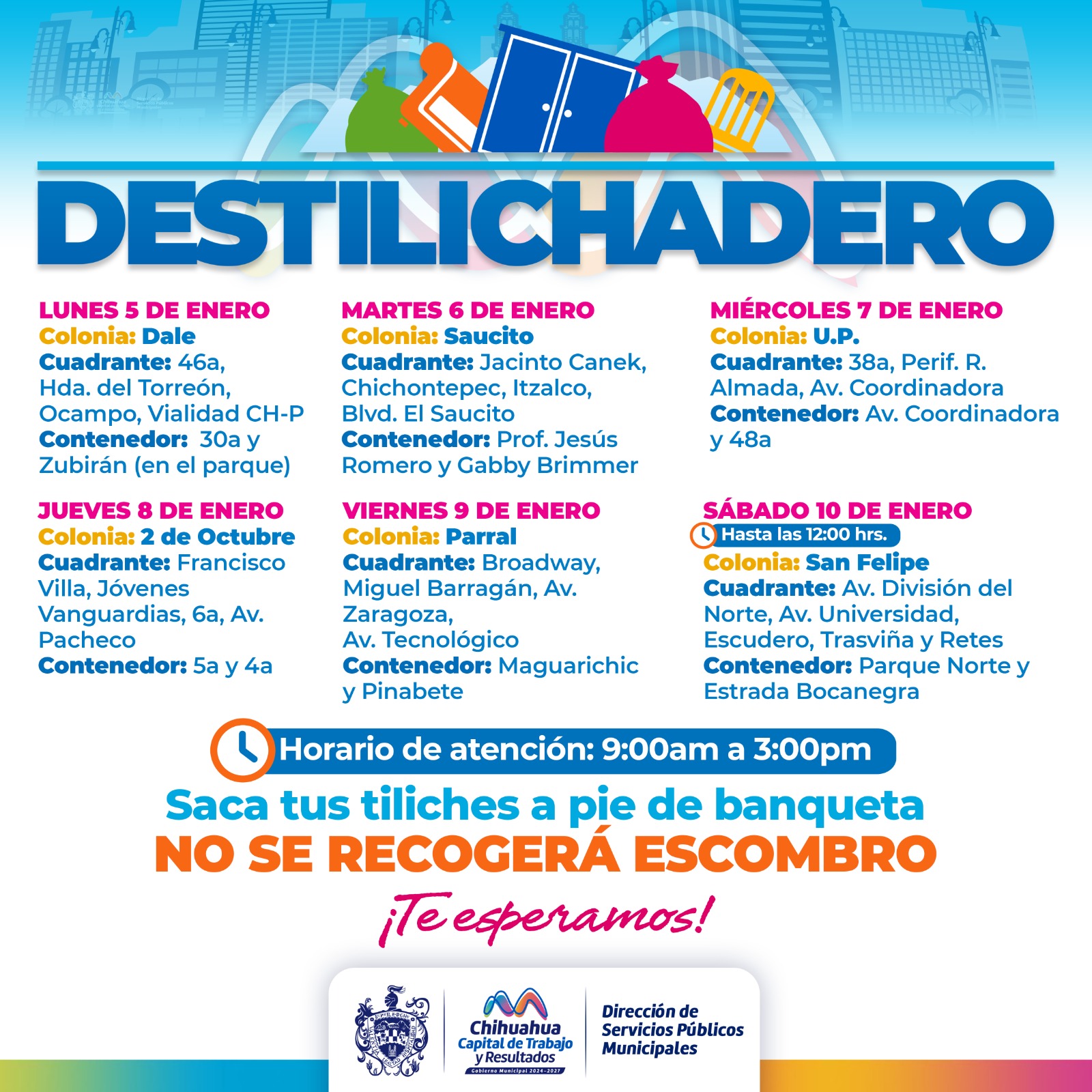 Programa Destilichadero en seis colonias del 5 al 10 de enero