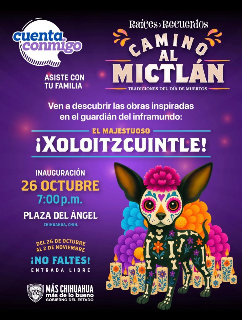 Gobierno del Estado invita a la comunidad Chihuahuense a revivir Raíces y recuerdos «Camino al Mictlán» este domíngo 26 en la plaza del Ángel a las 19:00 horas. Entrada libre.