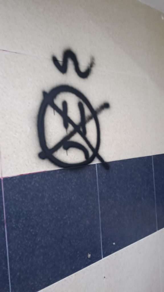 Los hechos ocurrieron la noche del viernes, cuando personal municipal de vigilancia detectó en infraganti a las personas, donde realizaban pintas al interior de los baños de una de las canchas del complejo deportivo.