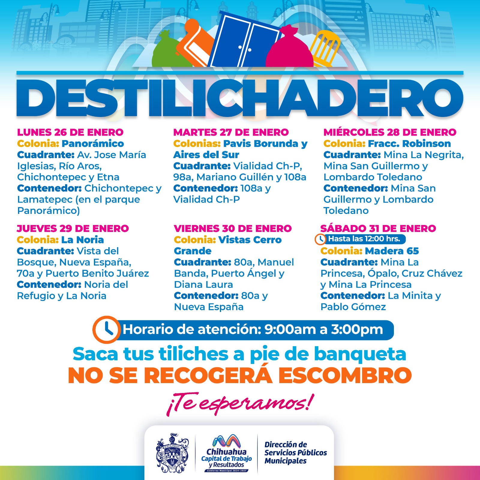 Estará Destilichadero en siete colonias del 26 al 31 de enero