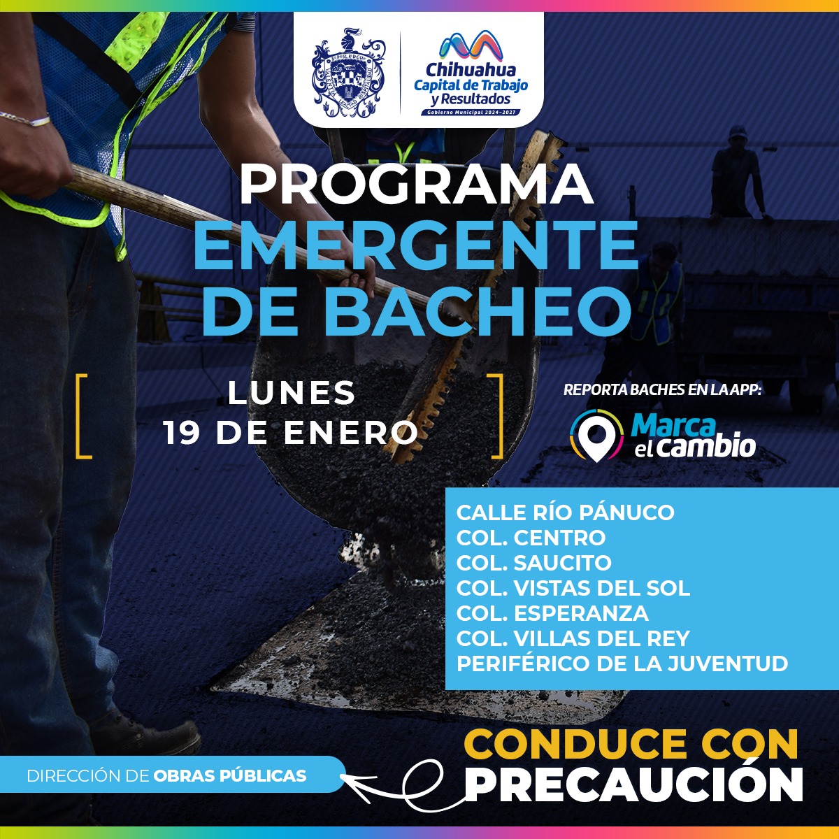 La Dirección de Obras Públicas municipales, realizará trabajos de bacheo este lunes 19 de enero…