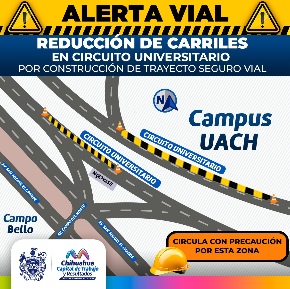 Cierre parcial de carriles en circuito Universitario por obras de Trayecto Vial Seguro en el Campus II UACH
