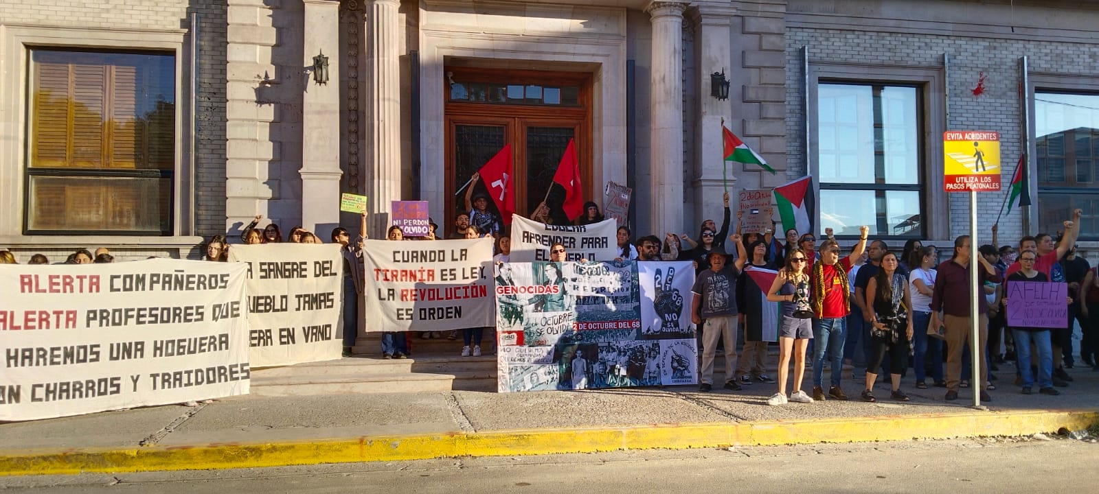 Se manifiestan frente a la rectoria de la UACH de manera pacífica