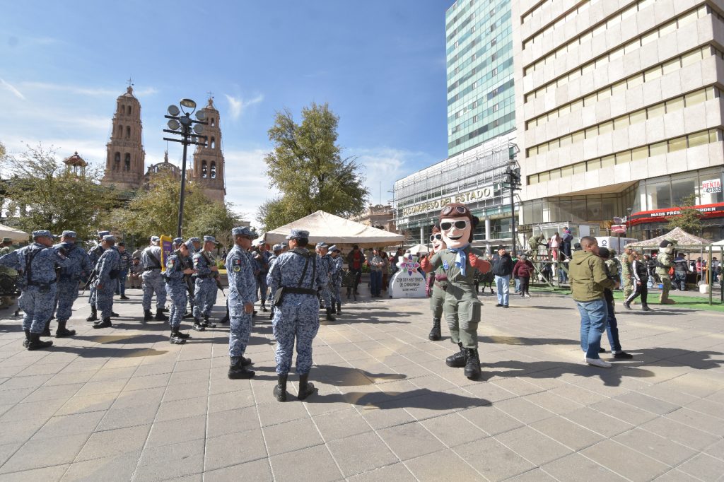 La plaza de Armas fue el escenario en el que los chihuahuenses y visitantes de otras partes del país, se tomaran la foto con oficiales, y demas integrantes de las fuerzas armadas, siendo una atracción el Sargento Bravo y la Sargento Victoria, además de las Unidades de Combate y la minipista del soldado.