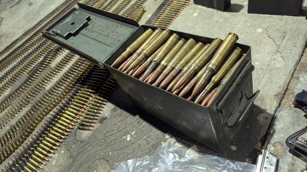 Durante la inspección de los vehÃculos, se aseguraron diversas armas de fuego, entre ellas un fusil Barrett calibre .50, tres pistolas, tres fusiles de asalto y una ametralladora, además de 34 cargadores y más de 2 mil 500 cartuchos útiles de distintos calibres.