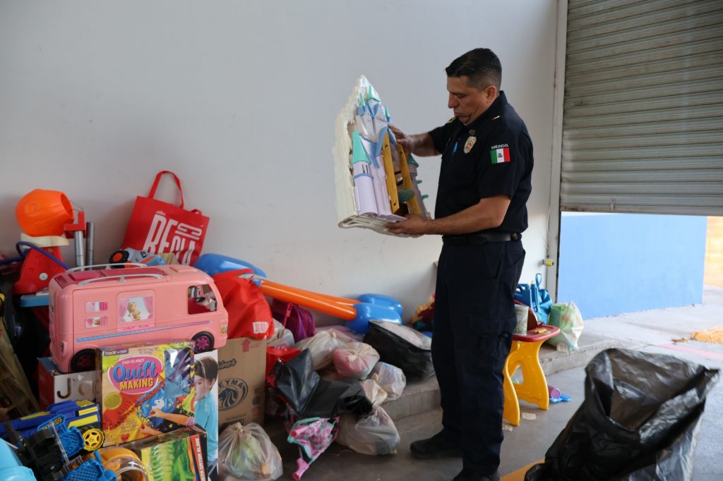 La estaciĂłn nĂșmero 7, ubicada en la zona de El Reliz sobre la prolongaciĂłn de la avenida TeĂłfilo Borunda, fue designada como centro de acopio, donde se concentran las donaciones provenientes de las demĂĄs estaciones. Entre los artĂculos recibidos se encuentran bicicletas, triciclos, patines, muñecas, peluches y pelotas, entre otros.