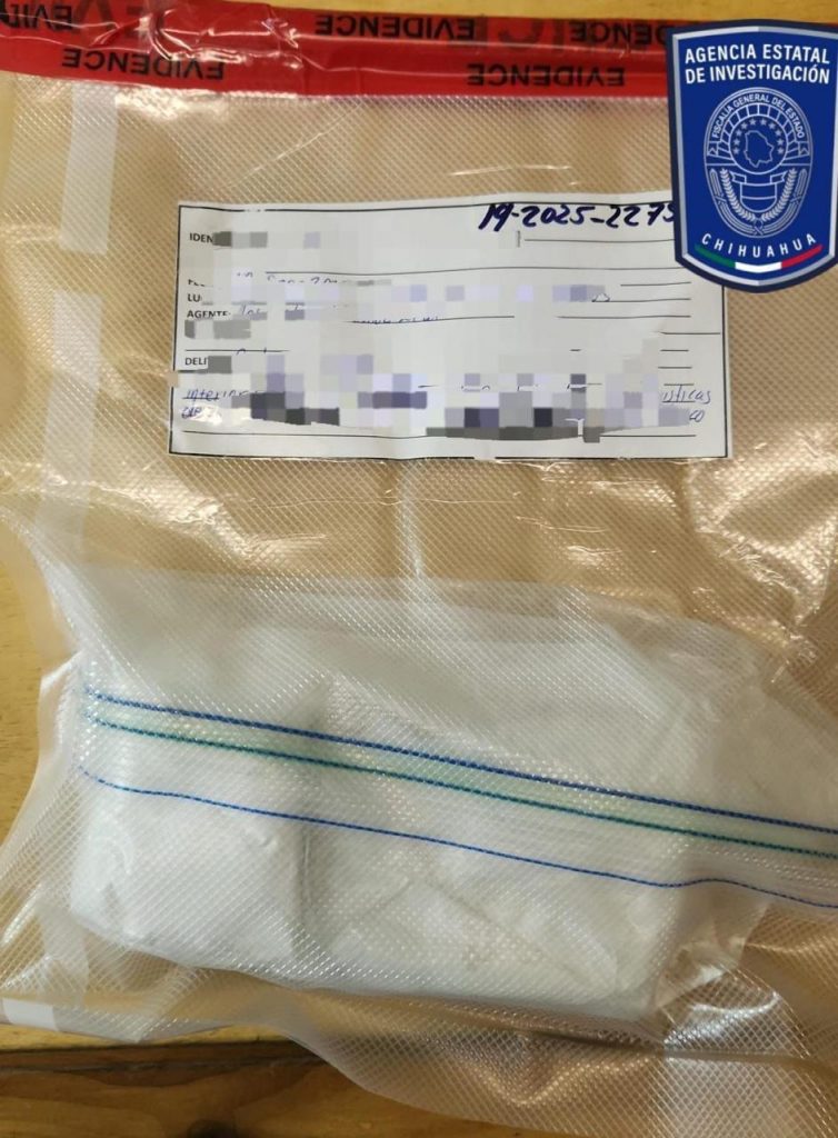 Al interior del domicilio, encontraron una bolsa transparente con sello hermético que contenía un polvo blanco y fino; así como un paquete con un rectángulo de una sustancia sólida color blanco con las características de la cocaína y un peso de 345 gramos. Sustancias que son analizadas en los laboratorios de Servicios Periciales.