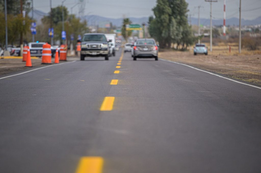 En el camino que conduce a la presa Francisco I. Madero, inauguró la rehabilitación de 132 kilómetros de ocho carreteras que conectan a Delicias con los municipios de Satevó, Valle de Zaragoza, Parral, Rosales, Meoqui, Saucillo y Julimes, con una inversión de 269 mdp.