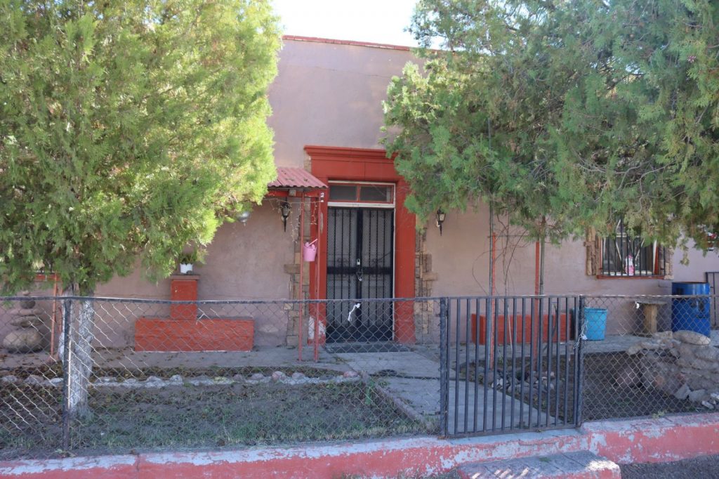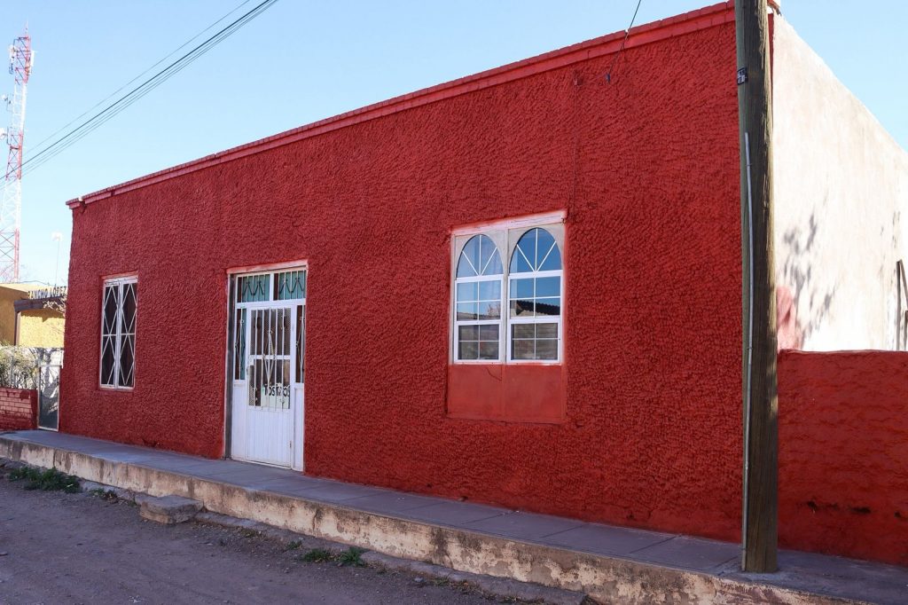 En la comunidad de Juan Mata Ortiz, municipio de Casas Grandes, se intervinieron cerca de 7 mil metros cuadrados de superficie de fachadas con una inversión de 500 mil pesos.