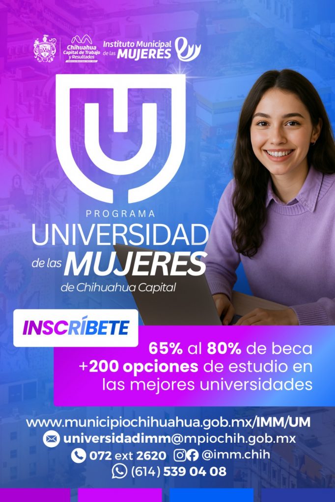 Para recibir más información sobre inscripciones, requisitos y oferta académica, las interesadas pueden comunicarse de lunes a viernes de 8:00am a 3:00pm, al 072 extensión 2620, o escribir al correo electrónico universidadimm@mpiochih.gob.mx.