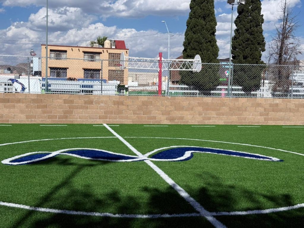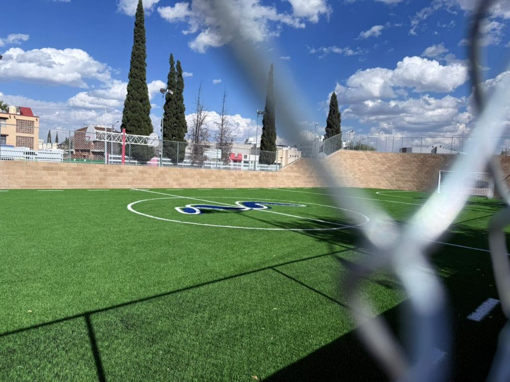 El proyecto contempló la modernización de la cancha de fútbol rápido, la edificación de una barda con muros de block cara de piedra y una malla ciclónica perimetrales, además del empastado con material sintético y la rehabilitación del sistema pluvial.