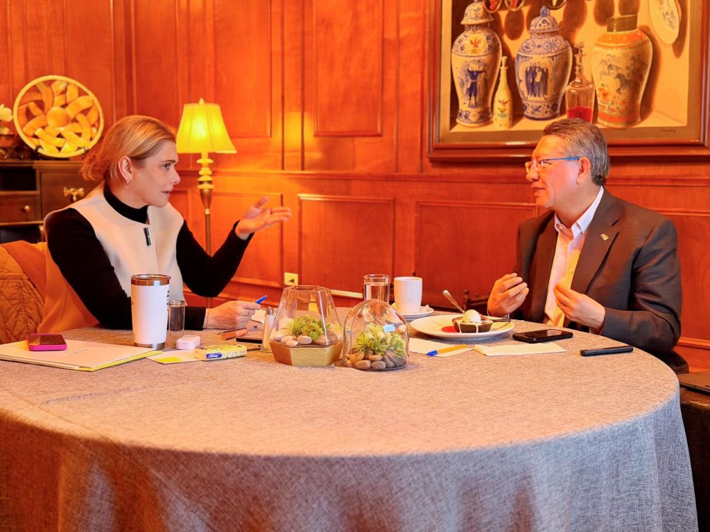La gobernadora Maru Campos sostuvo una reunión de trabajo con Óscar Ibáñez, rector de la Universidad Tecnológica de Ciudad Juárez (UTCJ), para dar seguimiento a los proyectos y acciones que actualmente desarrolla la institución.
