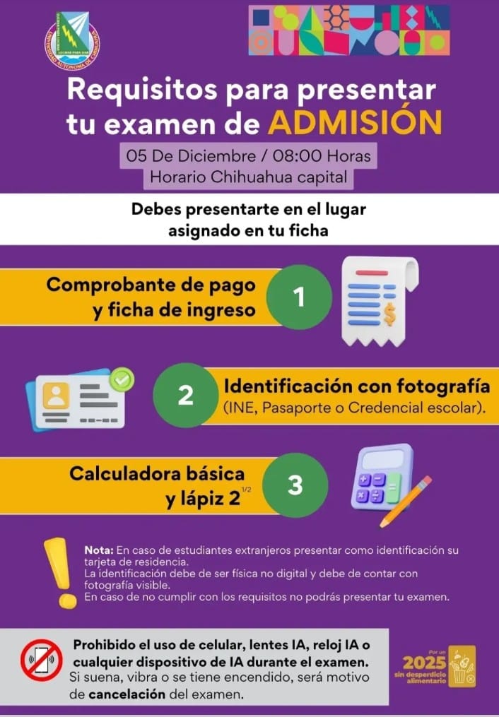 Que no se te pase, este viernes 5 de diciembre el Examen de Admisión en el UACH
