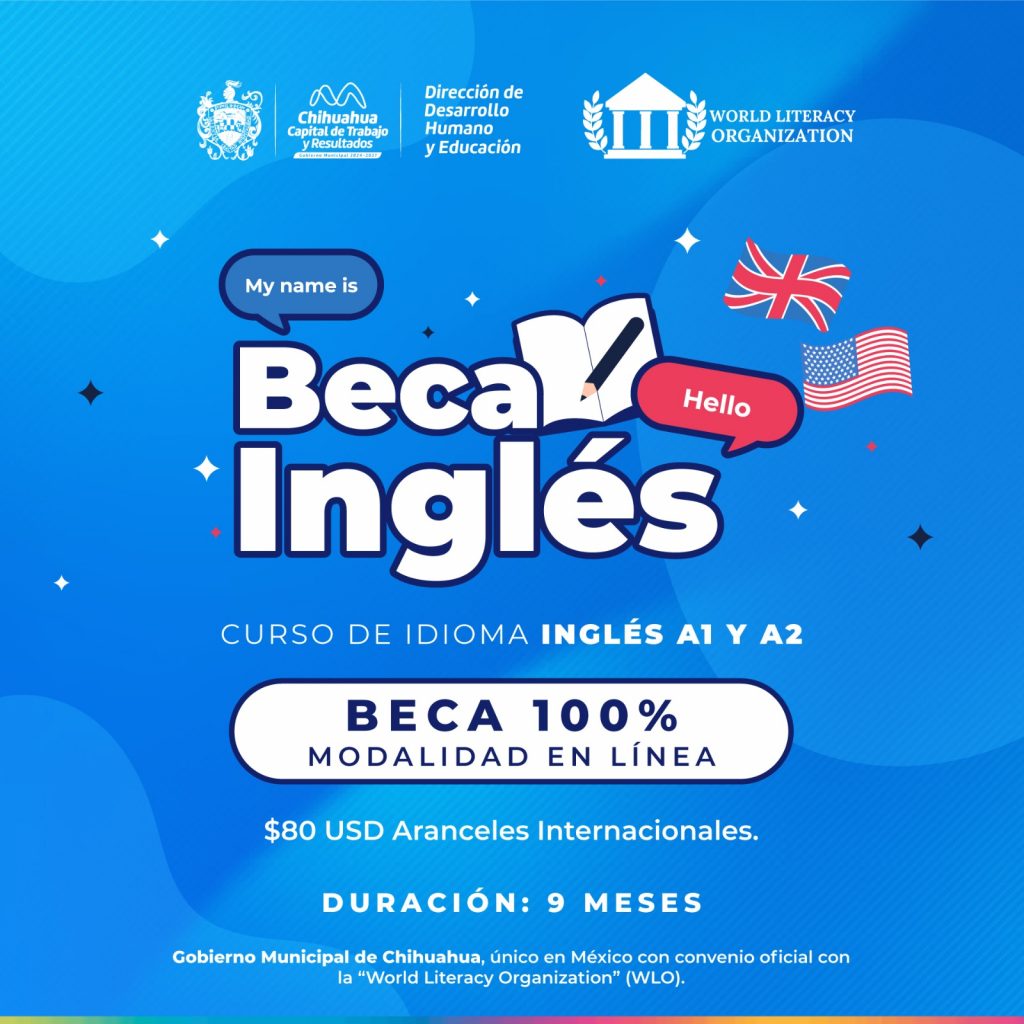 El Municipal de Chihuahua, realizó la invitación a ciudadanía a registrarse en la Beca de Inglés, disponible gracias a la colaboración con la World Literacy Organization (WLO) y el respaldo académico de la Universidad CEU Cardenal Herrera.