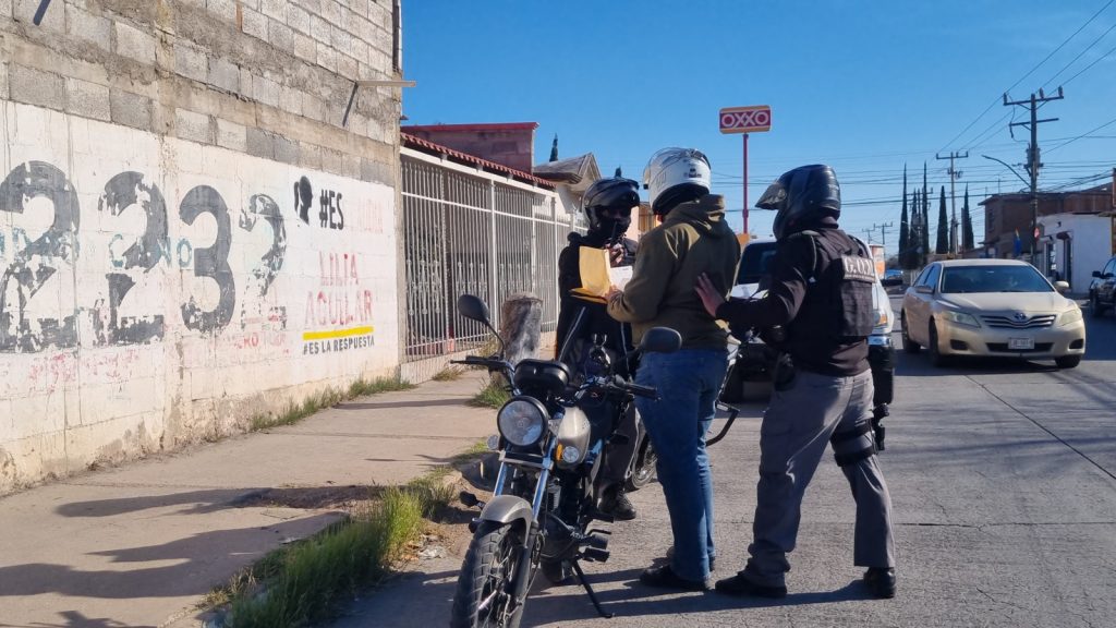 Como parte de las estrategias de seguridad que implementa la Dirección de Seguridad Pública Municipal, agentes de grupos especiales y del turno ordinario realizan revisiones constantes de motocicletas, lo que ha permitido la recuperación de unidades que cuentan con reporte de robo.