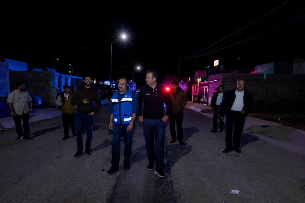 El alcalde de Chihuahua, Marco Bonilla, supervisó la reconversión de alumbrado pĆŗblico antiguo a luz LED, en la colonia Punta Naranjos, lo cual ha dotado a las familias del sector de una iluminación blanca mĆ”s potente, que consume menos energĆa, brinda mĆ”s seguridad y modernidad a la zona.