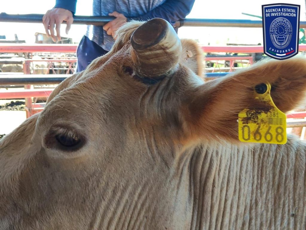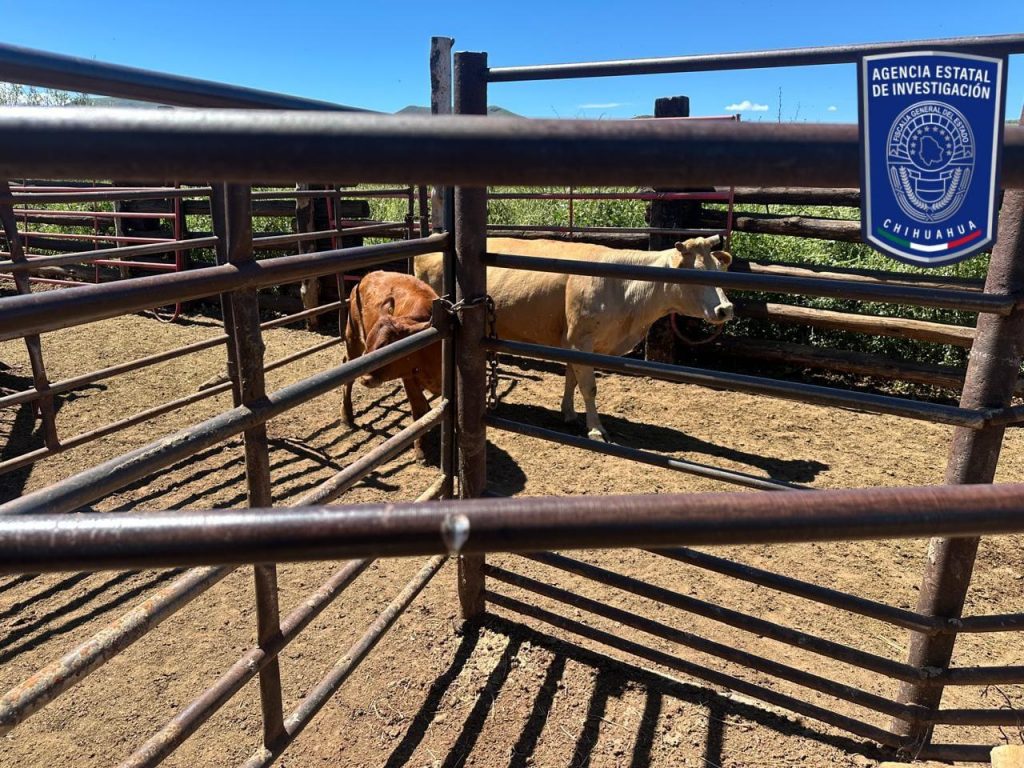 Elementos de la Agencia Estatal de Investigación (AEI) recuperaron dos cabezas de ganado vacuno en el municipio de Casas Grandes. El aseguramiento se logró como parte de una investigación por robo.