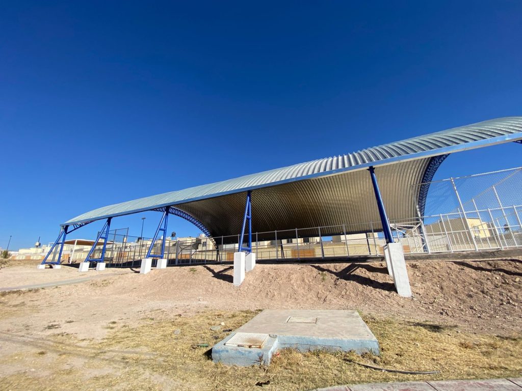 El Gobierno Municipal de Chihuahua, a través del programa de Presupuesto Participativo, rehabilitó las canchas ubicadas en Romanzza y Libia, un proyecto impulsado por vecinos de la comunidad que hoy permite que alrededor de 300 niñas, niños y jóvenes practiquen fútbol y basquetbol en mejores condiciones, gracias a la instalación de un domo metálico, pintura renovada y malla ciclónica rehabilitada.
