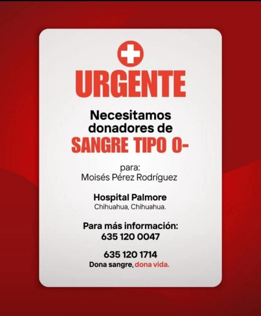 Urgente necesitamos donadores de sangre tipo O-